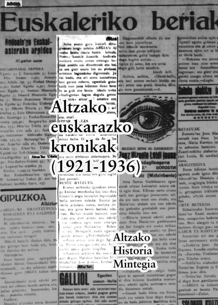 Liburu hau Altzatik euskaraz idatzitako kroniken bilduma da. Euskarazko kazetaritzaren sorrera berantiarra izan zen, eta bizitza laburra, 1936. urteko Gerra Zibilak bortizki eten egin baitzuen bere bidea. Euskal Herrian ez bezala, Altzan euskarazko kronikak abertzaleek soilik idatzi zituzten, jeltzaleek, hain zuzen ere. Haiena ez zen lanbide bat, militantzia kontu bat baizik, eta haien kroniketan agertzen diren izenak eta gertakizunak lotura estua dute elizarekin eta batzokiarekin. Kronistek ezizenez sinatzen zuten eta, tamalez, ez dugu aukera izan haien izen-abizenak jakiteko. Haien artean, ordea, elkar ezagutzen zuten eta kronika askotan kronista bat besteari zuzentzen zitzaion. Euskara euskal identitatearen osagaia zen, baina, oro har, garai hartan euskararen erabilera sinbolikoa zen, jainkoaren eta proiektu politikoaren mesedean. Kroniketan jarraitzen duten eskema eta estiloa beste herrietako kroniken antzekoak dira, protagonisten izenak aldatzen dira soilik. Bilduma honetan aipatzen diren pertsonak, lekuak eta gaiak asko dira. Aurkibideek lagunduko diote irakurleari bilaketan eta liburuari zukua ateratzen.